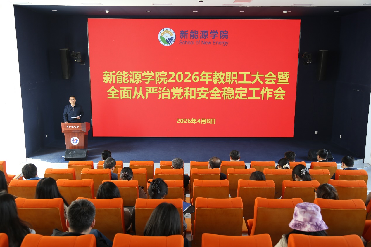 4月8日下午,新能源学院在教一楼14阶梯报告厅召开教职工大会暨全面从严治党和安全稳定工作会议。学院领导班子成员及全体教职工参加会议,会议由学院党委副书记、工会主席姜良杰主持。