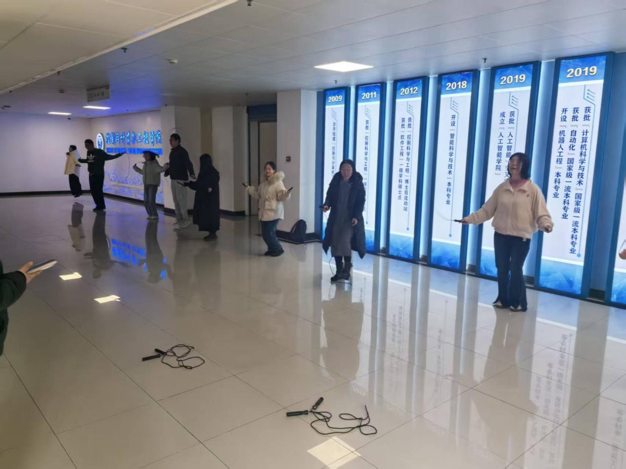 “我健身,我快乐”!为了丰富教职工文化生活,引导教职工树立健康生活的理念,以更昂扬的精神投入工作, 3月10日中午,机关二分工会组织开展了教职工跳绳活动。