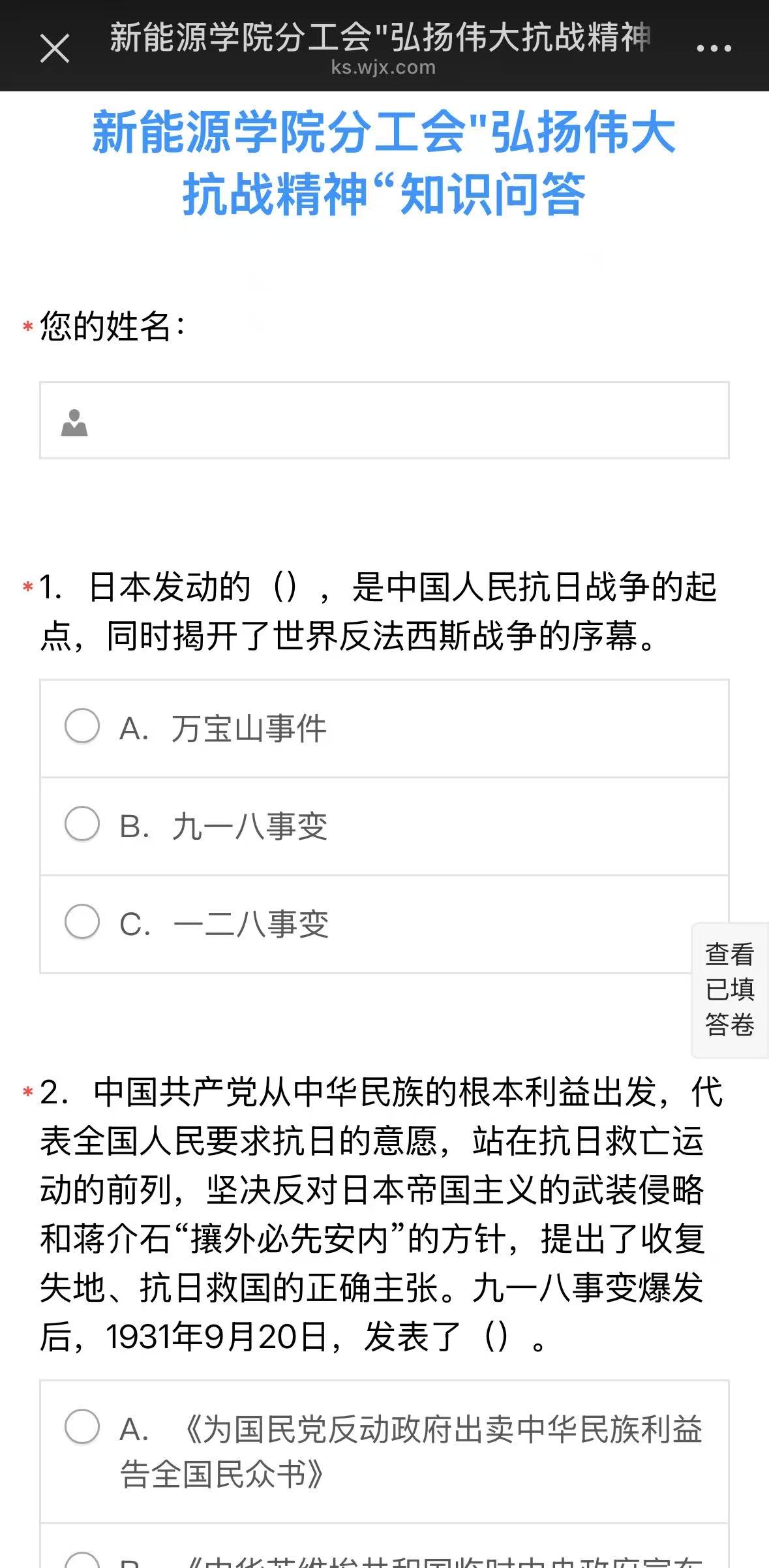 为深切缅怀革命先烈,弘扬以爱国主义为核心的伟大抗战精神,进一步激发广大职工的爱国热情和历史责任感,凝聚奋进新征程、建功新时代的磅礴力量,新能源学院分工会于近日启动了“弘扬伟大抗战精神”主题在线答题活动。