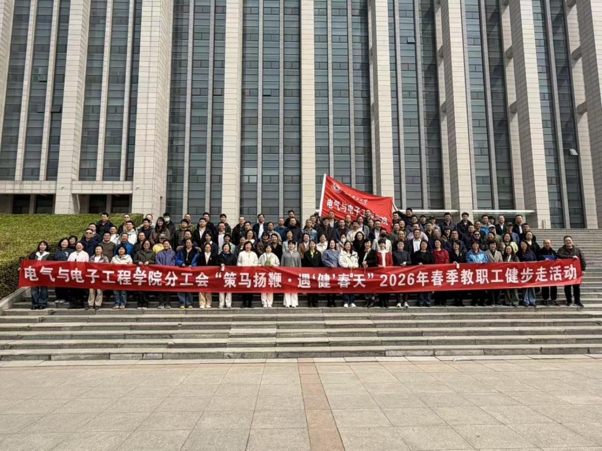 3月24日中午,电气与电子工程学院分工会组织开展“策马扬鞭·遇‘健’春天”春季教职工健步走活动。学院教职工走出办公室、走向校园,在盎然春意中舒展身心、强健体魄,以昂扬姿态感受运动活力,共赴一场与春天同行的健步之约。