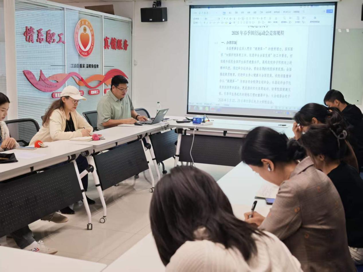 会议首先传达了学校关于2026年运动会的总体安排和竞赛规程。分工会负责人指出,校运动会是全校性的大型体育盛事,也是机关二展示团队凝聚力、战斗力的重要舞台。各工会小组要高度重视,广泛宣传,精心组织,确保各项工作落到实处。