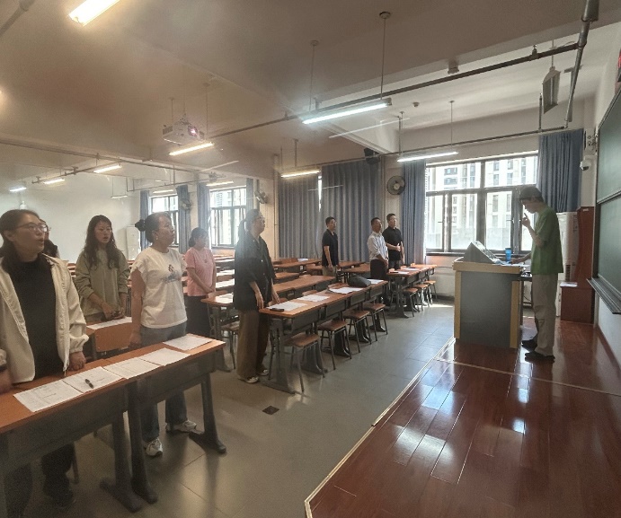 从最初的生疏到逐渐熟练,从单声部练唱到多声部和谐共鸣,参与排练的教职工们全情投入,歌声一次比一次嘹亮,配合一次比一次默契。慷慨激昂的旋律和催人奋进的歌词,不仅唤起了大家心中的红色记忆,更唱出了环境学院教职工对党和祖国的深厚情感与坚定信念。